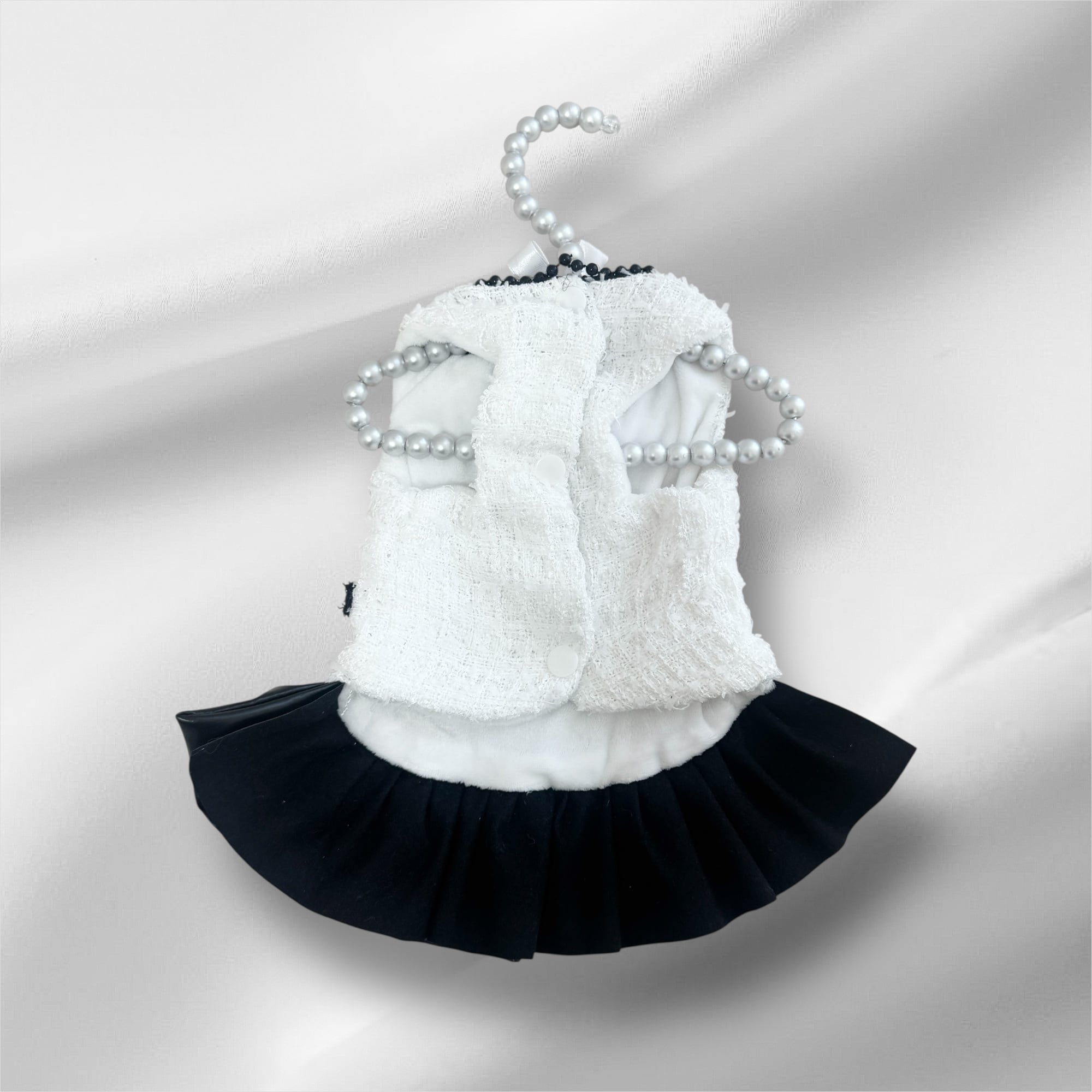#Bonbonnie #犬服 #ドッグドレス #ツイードドレス #韓国風ペット服 #高級犬服 #誕生日コーデ #撮影コーデ #モノトーンドレス #ノワールドレス #サテンフリル