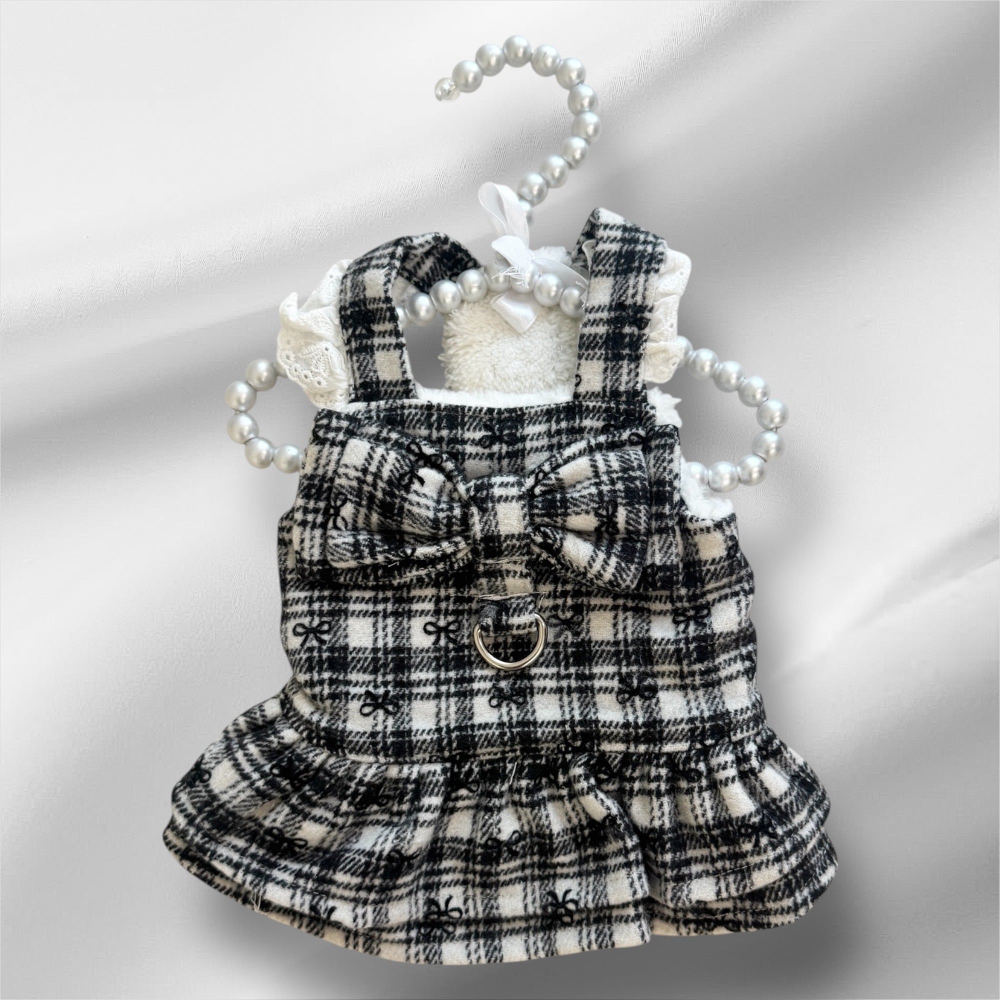 #Bonbonnie #犬服 #ドッグワンピース #ツイードワンピース #リード付き #韓国風ペット服 #高級犬服 #ビッグリボン #チェック柄 #リボン柄 #ピンクコーデ #モノトーンコーデ