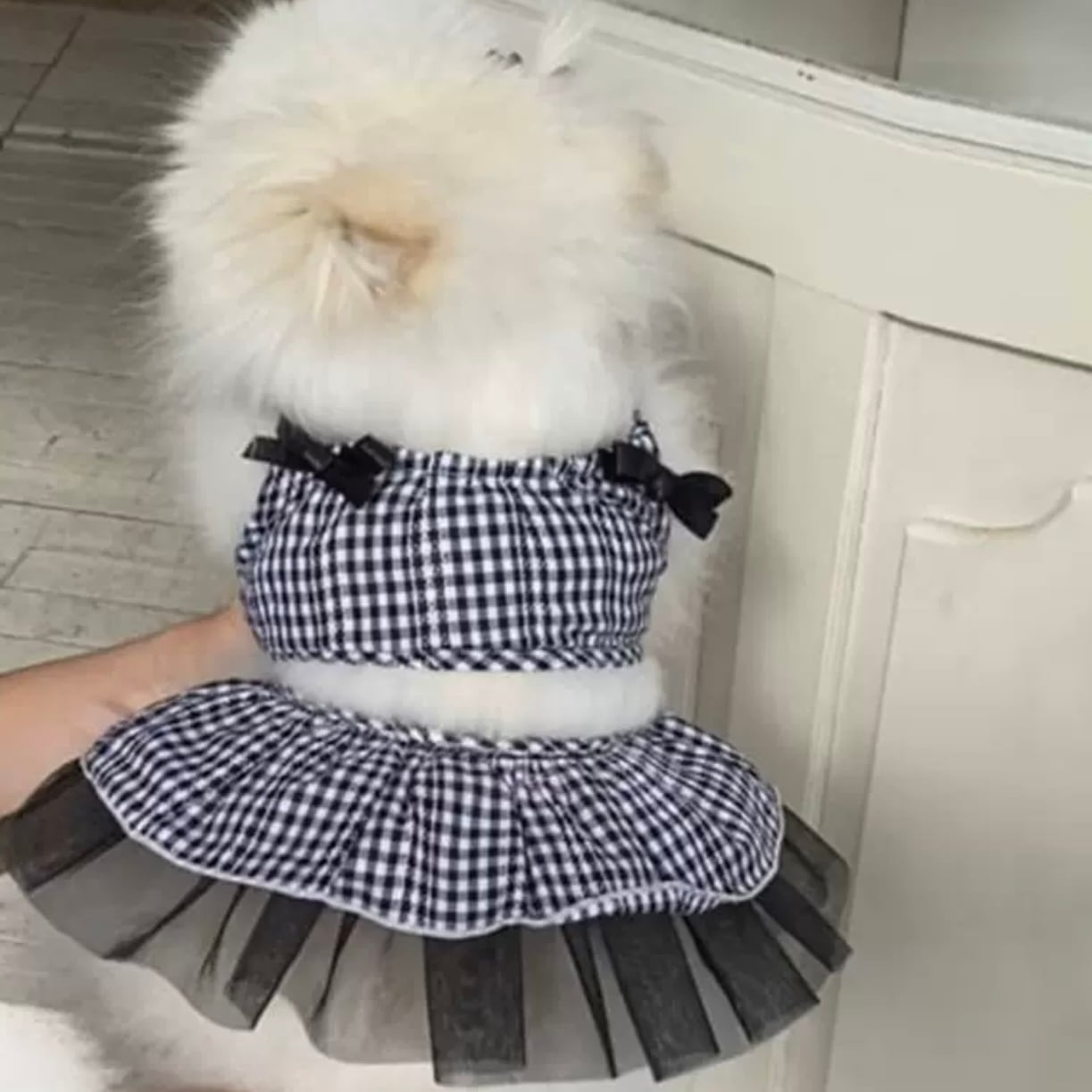 クラシカルなチェック柄に、裾にはふわっと広がるブラックチュール。