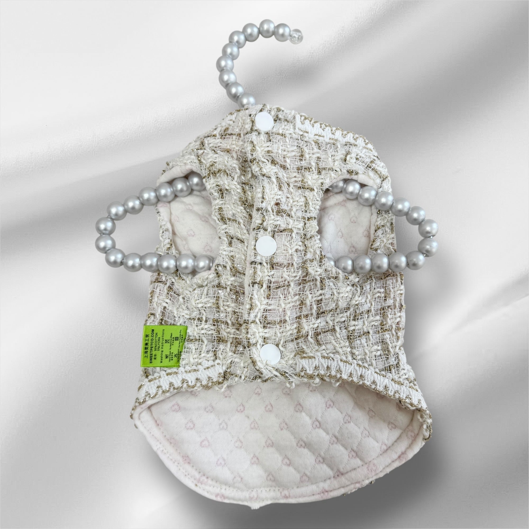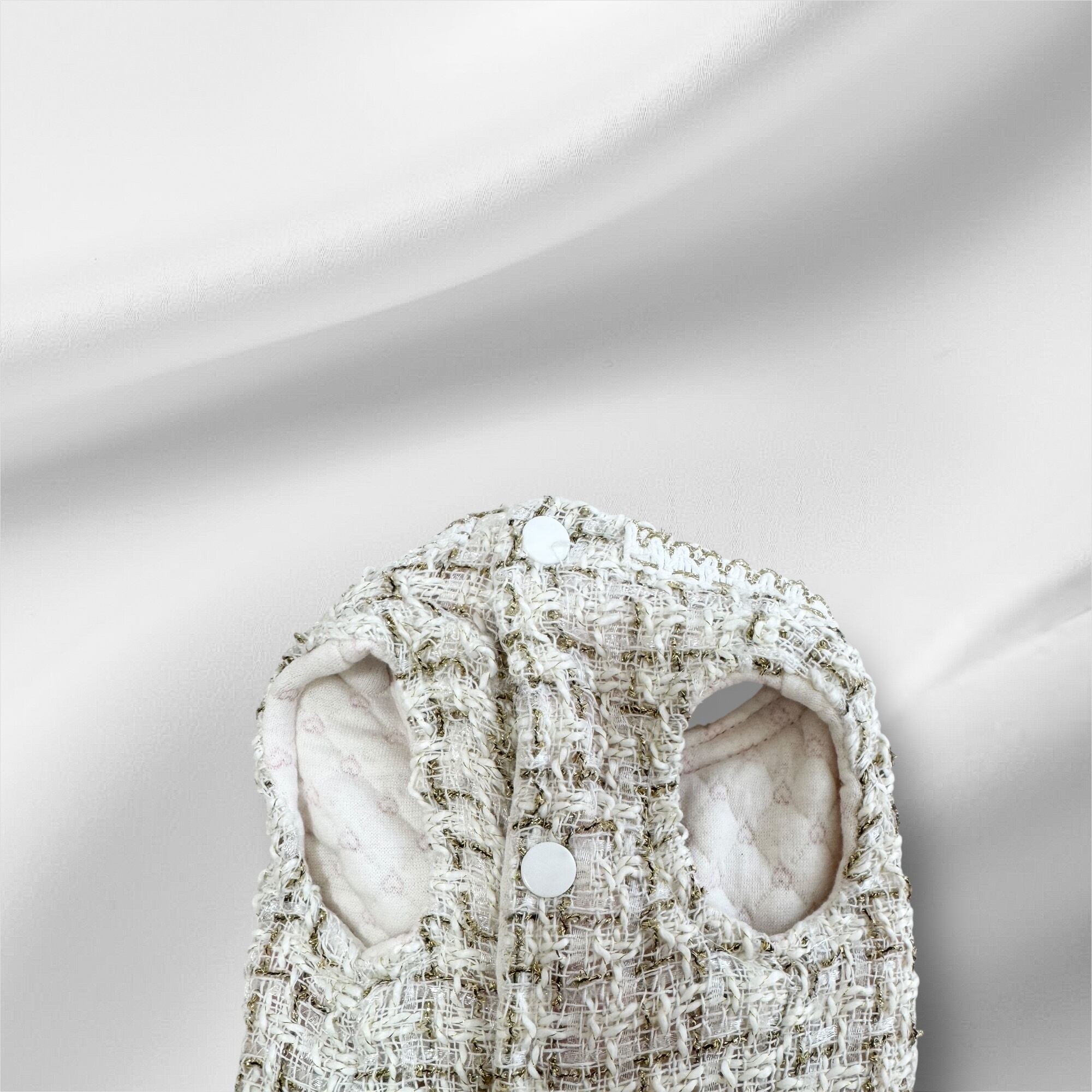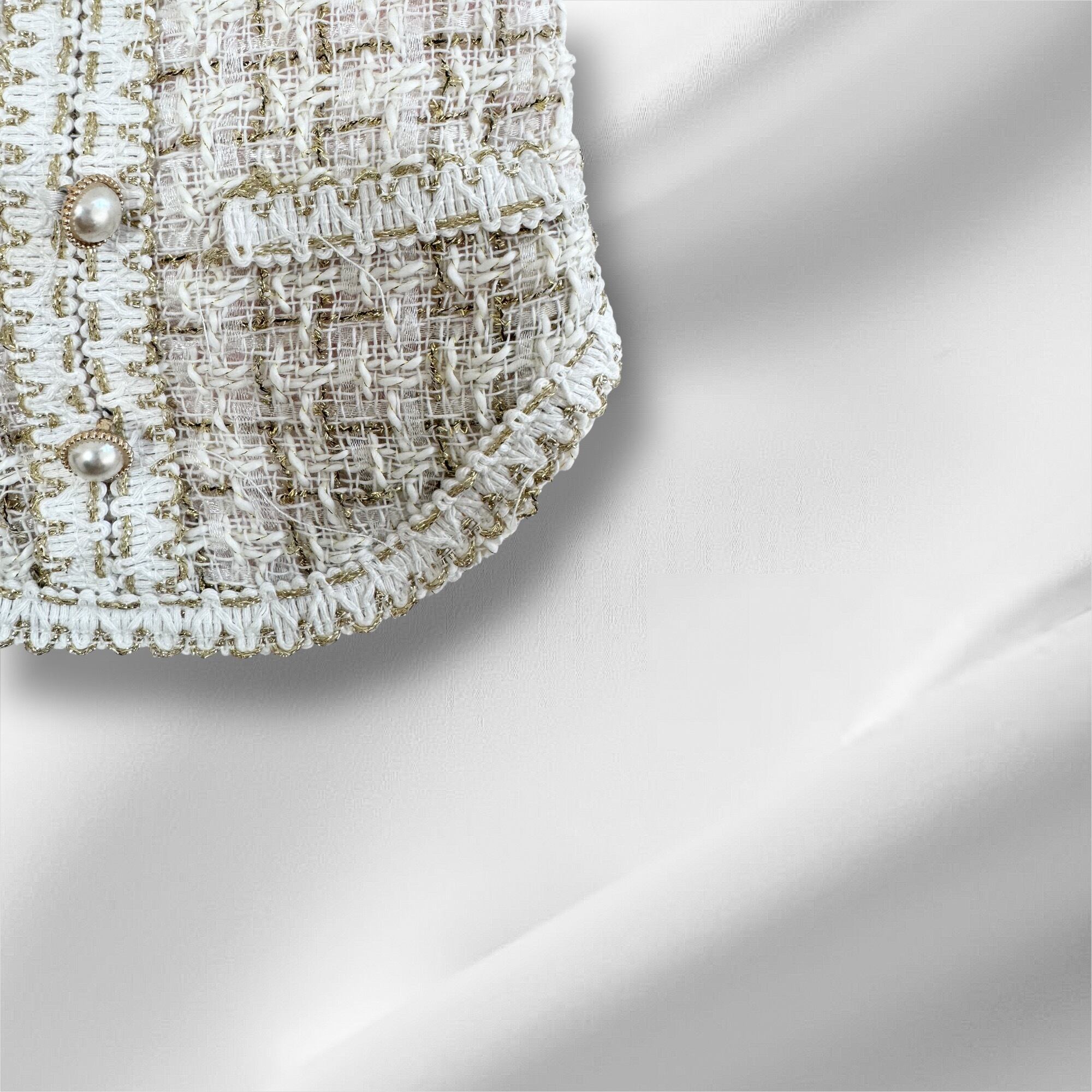 ✔️ 高級感あるツイード素材&パールボタンデザイン