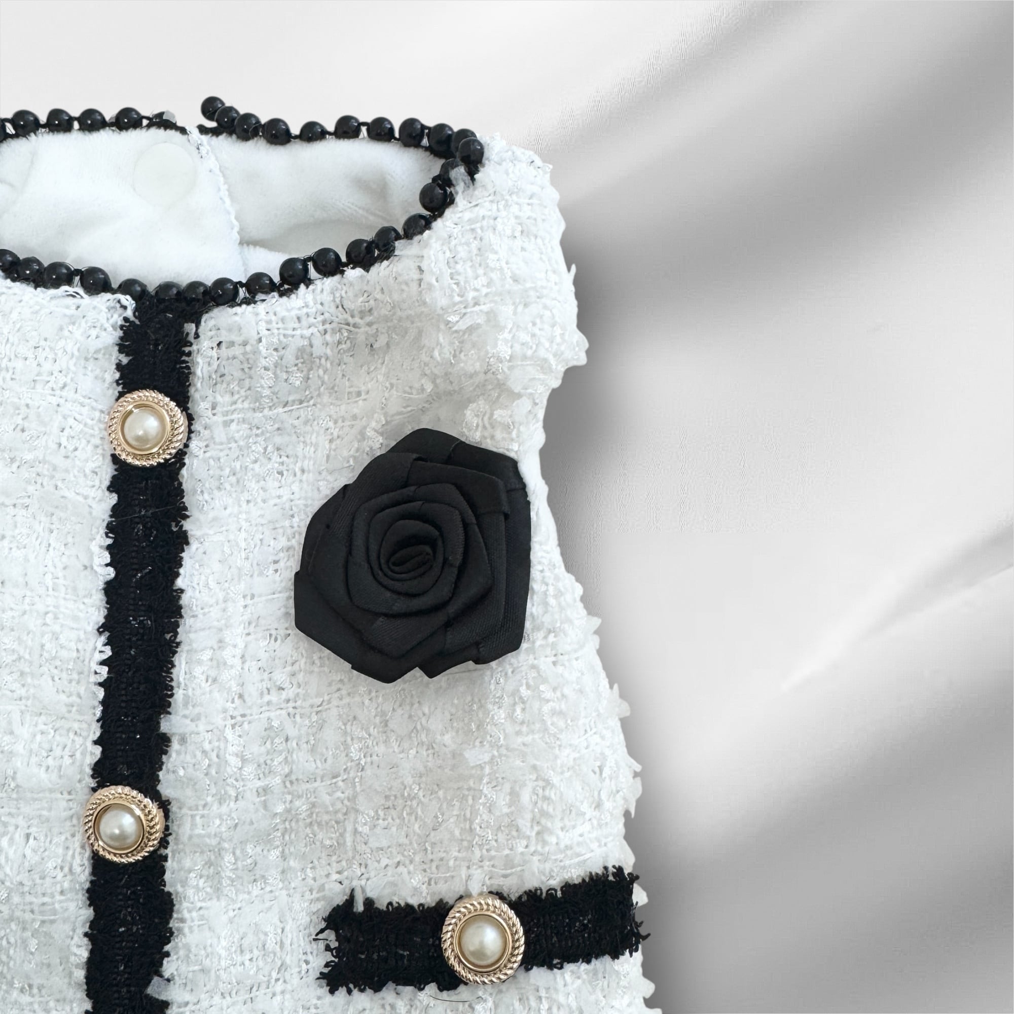 #Bonbonnie #犬服 #ドッグドレス #ツイードドレス #韓国風ペット服 #高級犬服 #誕生日コーデ #撮影コーデ #モノトーンドレス #ノワールドレス #サテンフリル