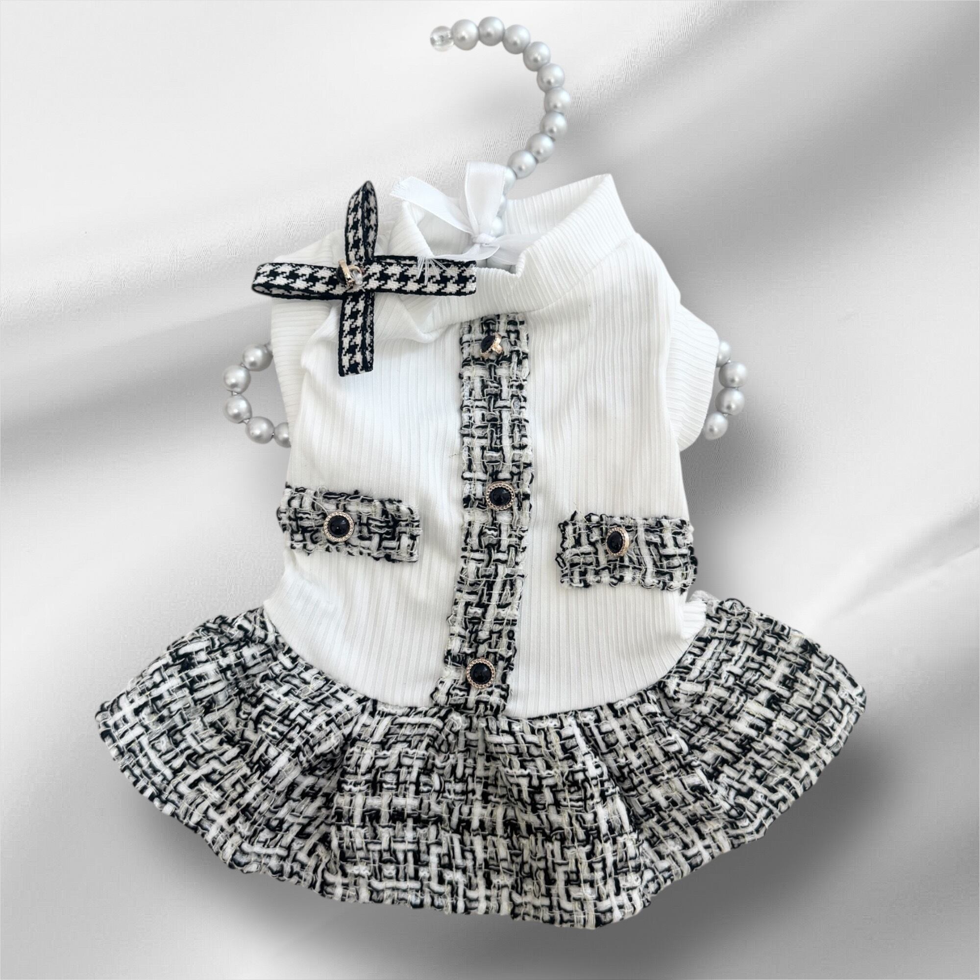 #Bonbonnie #犬服 #ドッグドレス #ツイードドレス #千鳥格子 #韓国風ペット服 #お出かけコーデ #撮影コーデ #高級犬服 #クラシカルドレス #アイボリーブラック